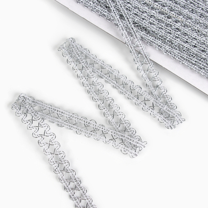 Тесьма «Ажурная» серебро, ширина 1,5 см, намотка 25 метров