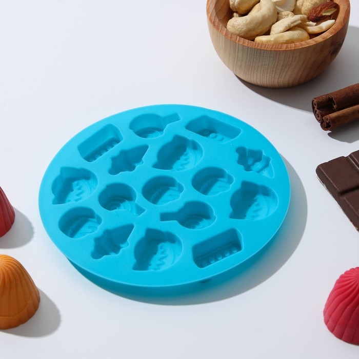 Форма для мармелада Доляна «Морской мир», силикон, 22×14×1 см, 14 ячеек, цвет МИКС