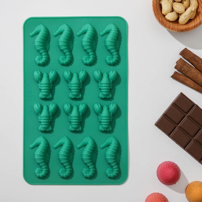Форма для мармелада Доляна «Морской мир», силикон, 22×14×1 см, 14 ячеек, цвет МИКС