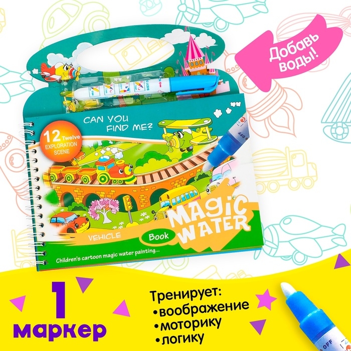 Книжка для рисования водой удивит малыша и его родителей! Используя волшебный маркер, ребёнок сможет несколько раз раскрашивать книжку. При этом руки и одежда юного художника останутся чистыми.