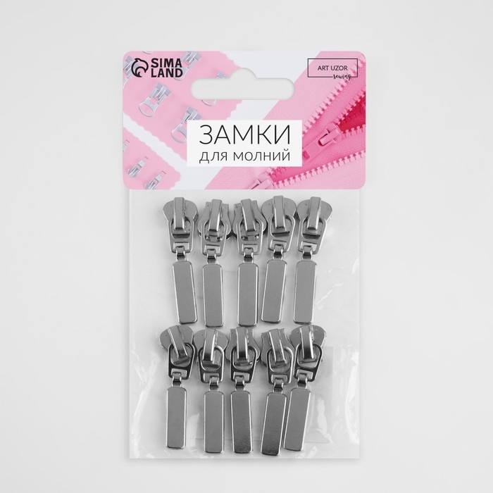 Бегунок автоматический для молнии «Трактор», №5, 10 шт, цвет никель