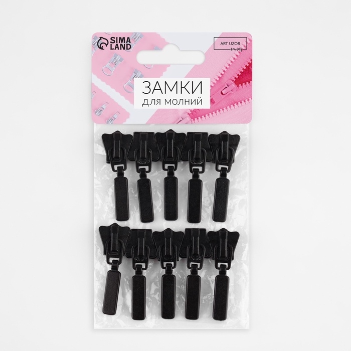 Бегунок автоматический для молнии «Трактор», №8, 10 шт, цвет чёрный