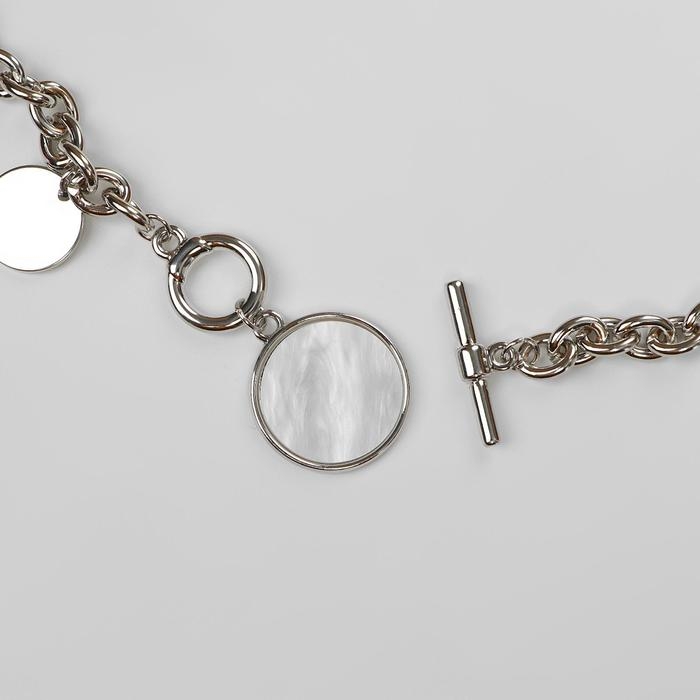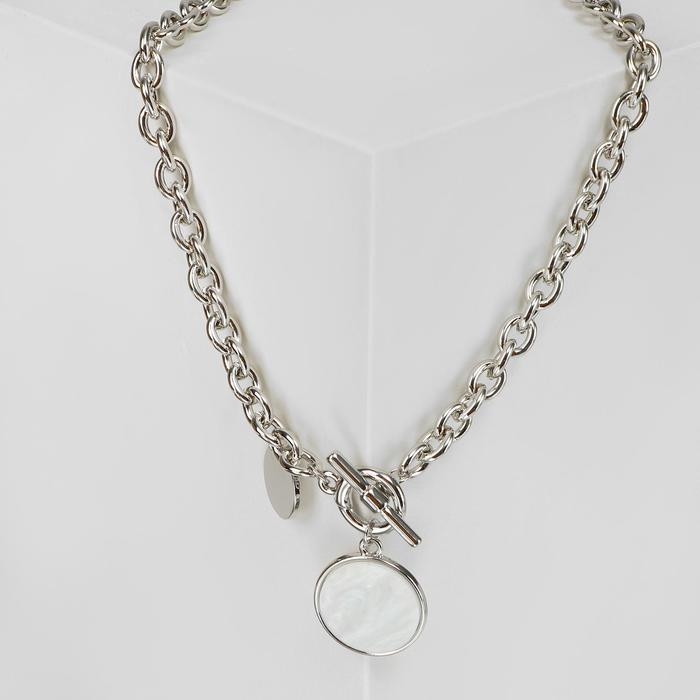 Кулон «Цепь» перламутровый медальон, цвет бежевый в серебре, 42 см