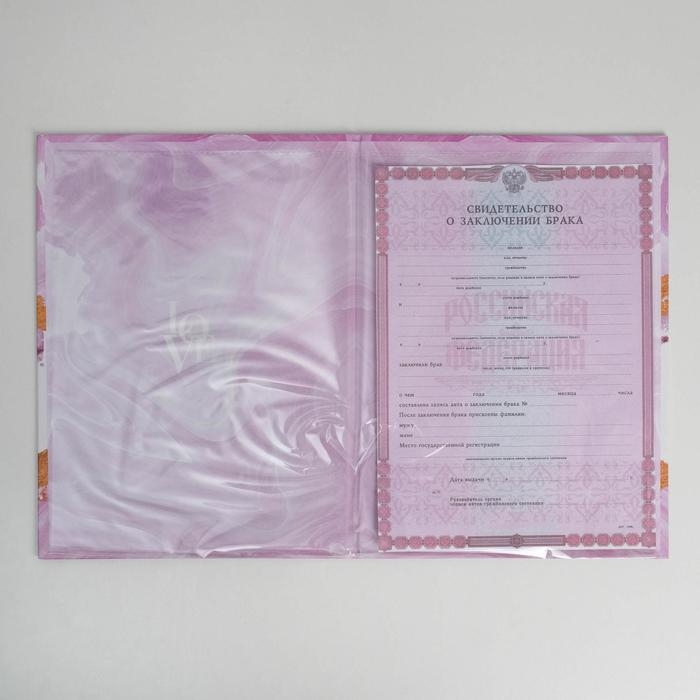 Обложка для свидетельства о заключении брака формата А4 станет лучшим обрамлением для вашего первого совместного документа. Красивая свадебная папка подчеркнёт всю торжественность бракосочетания, она будет напоминать вам о светлом дне свадьбы. В такой папке ваш семейный документ не помнётся, не испачкается и будет сохранять свою красоту всю жизнь. Оригинальный дизайн папки создаст отличное настроение новобрачным и станет хорошим презентом на свадьбу или её годовщину. Формат обложки А4. Папка с файлом А4.