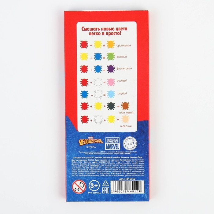 Акварель медовая «Человек-паук», 12 цветов, в картонной коробке, без кисти