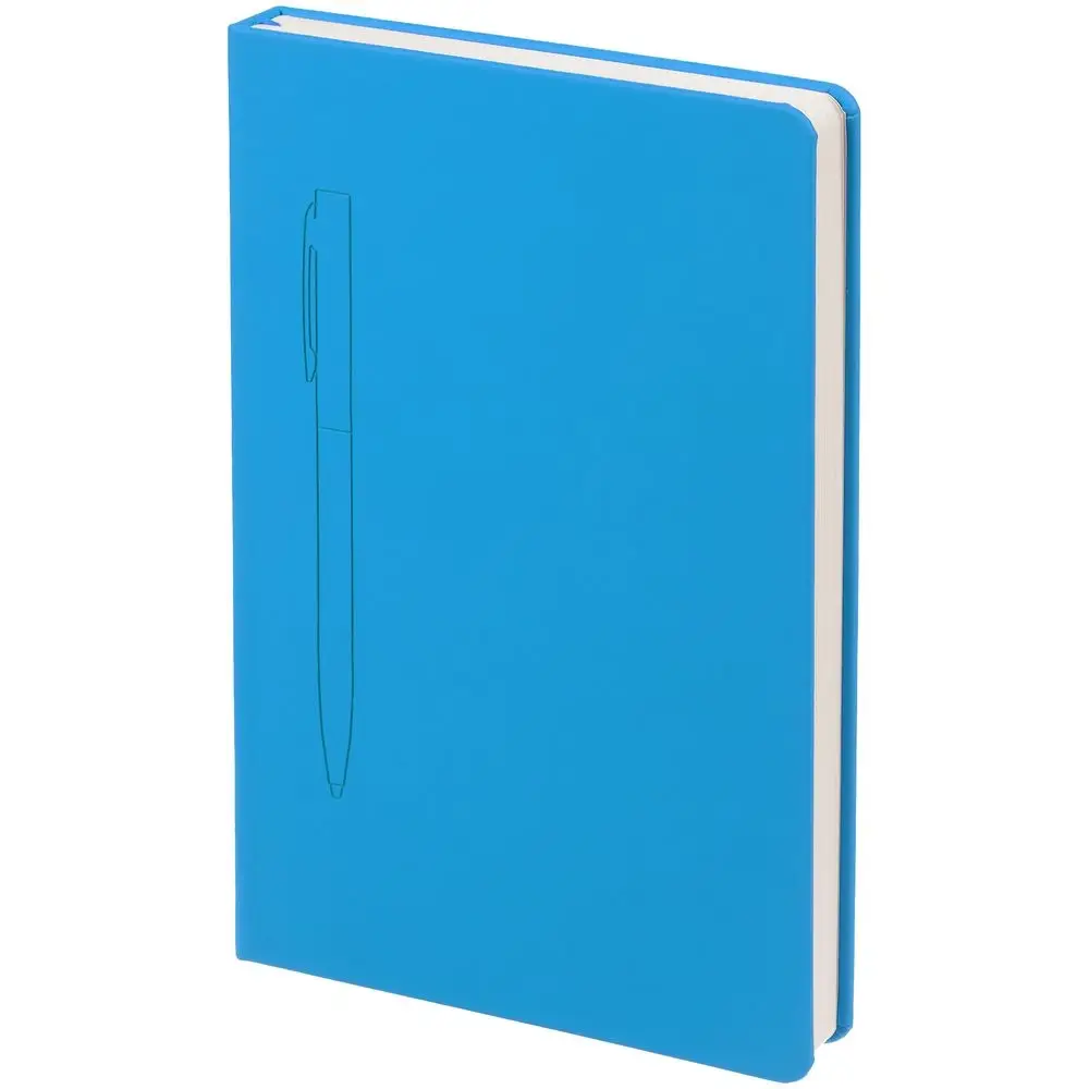 Ежедневник в твердой обложке, выполненной из материала Soft Touch Ultra, голубой JJ, дополнен атласным ляссе и магнитом, удерживающим ручку.