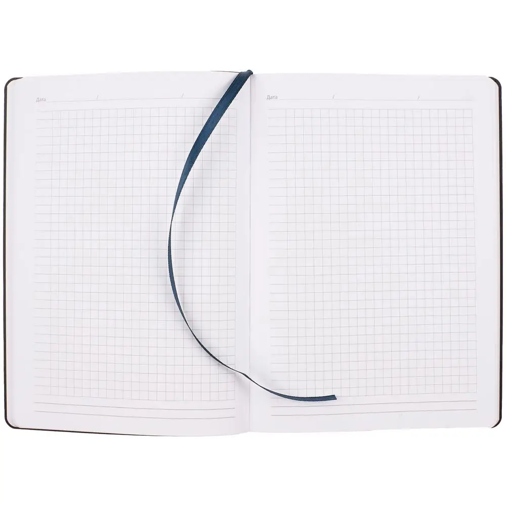 Ежедневник с гибкой обложкой, выполнен из материала Nubuck Touch, темно-синий ХХ, дополнен ляссе темно-синего цвета.