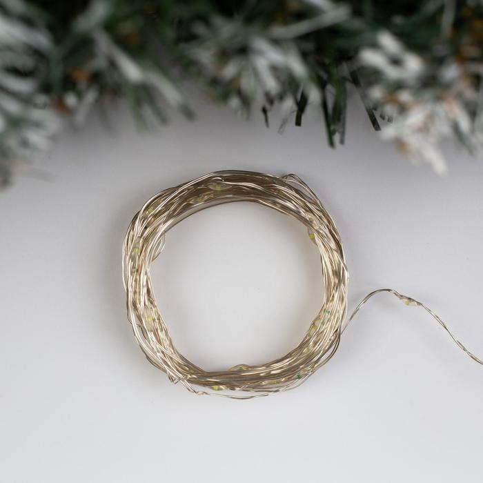 Гирлянда «Нить» 5 м роса, IP20, серебристая нить, 50 LED, 2 режима, батарейки AAх3 (не в комплекте), свечение белое