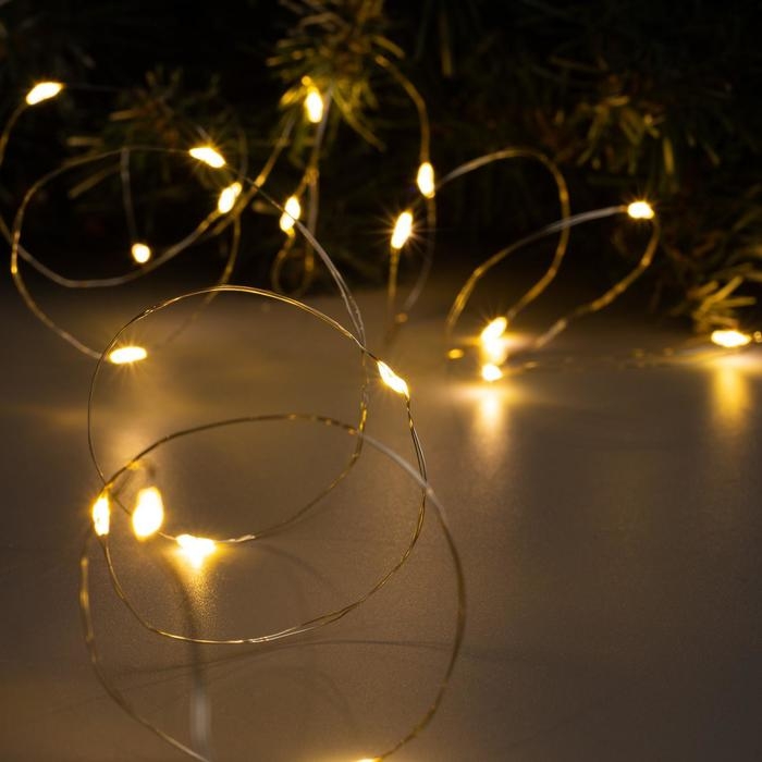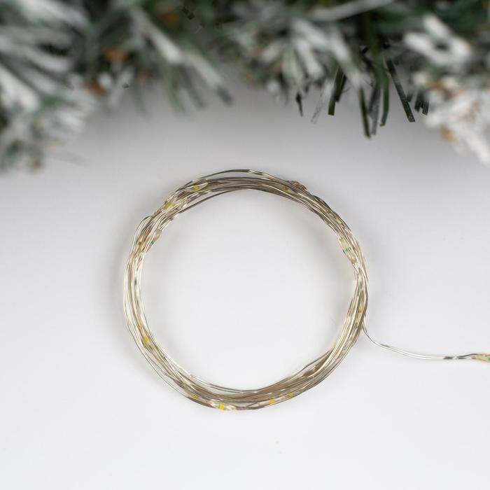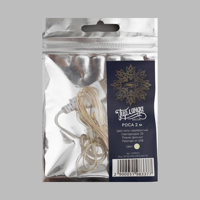Гирлянда «Нить» 2 м роса, IP20, серебристая нить, 20 LED, свечение тёплое белое, USB