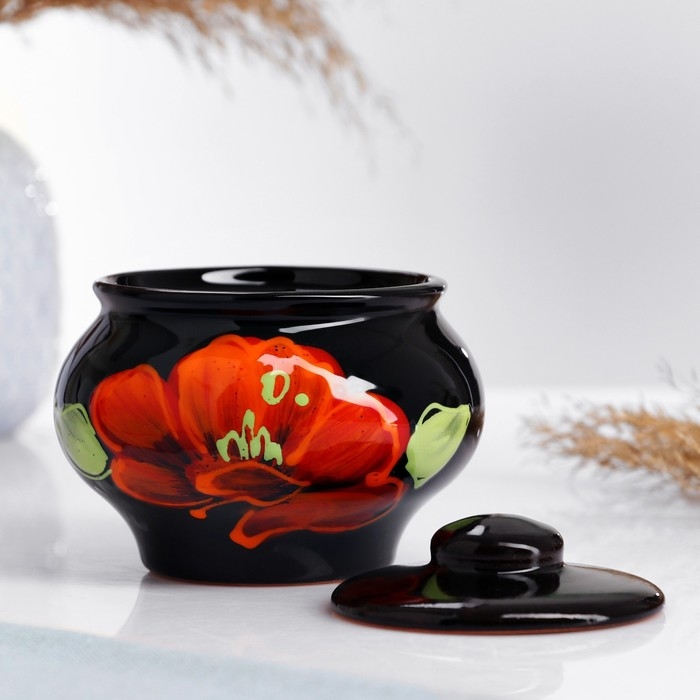 Горшок для запекания "Русский" 0,33л / 9,5х11,2см, мак на черном