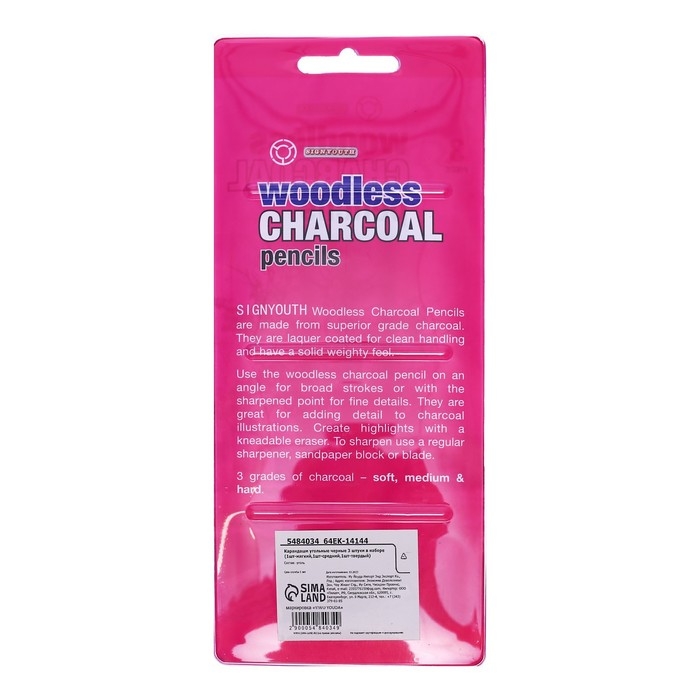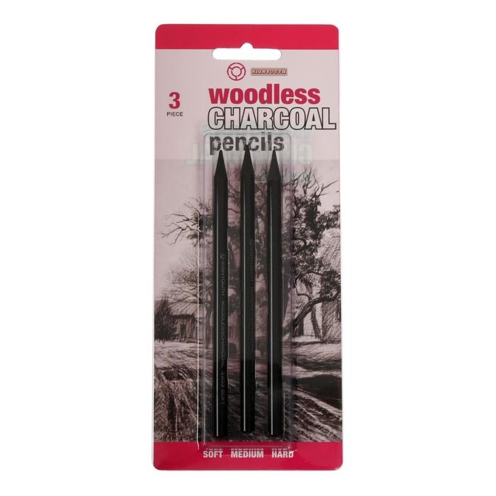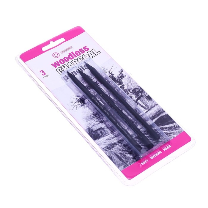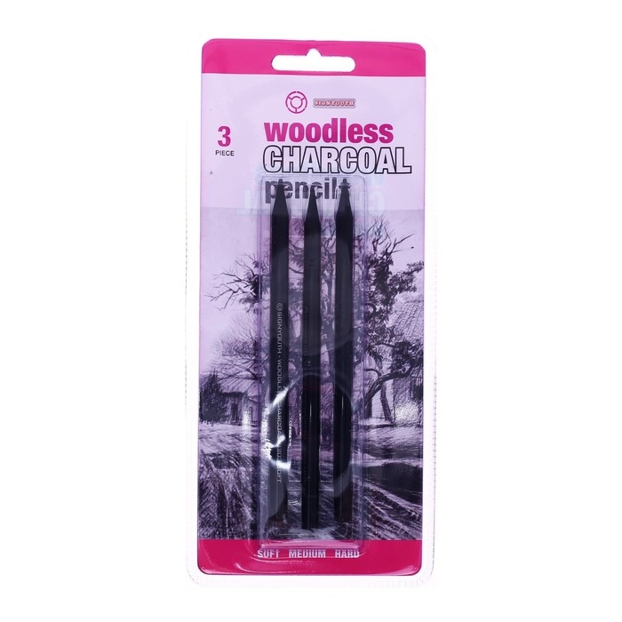 Карандаши угольные, черные, 3 штуки в наборе ( 1 шт-мягкий, 1 шт-средний, 1 шт-твердый)