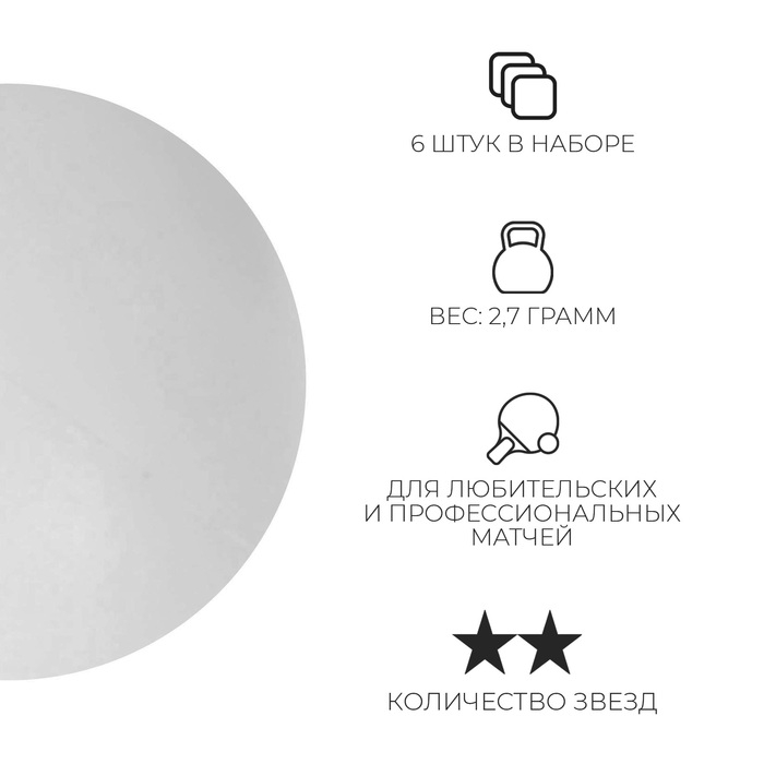 Мяч для настольного тенниса Championship 2**, набор 6 шт., ABS, цвет белый