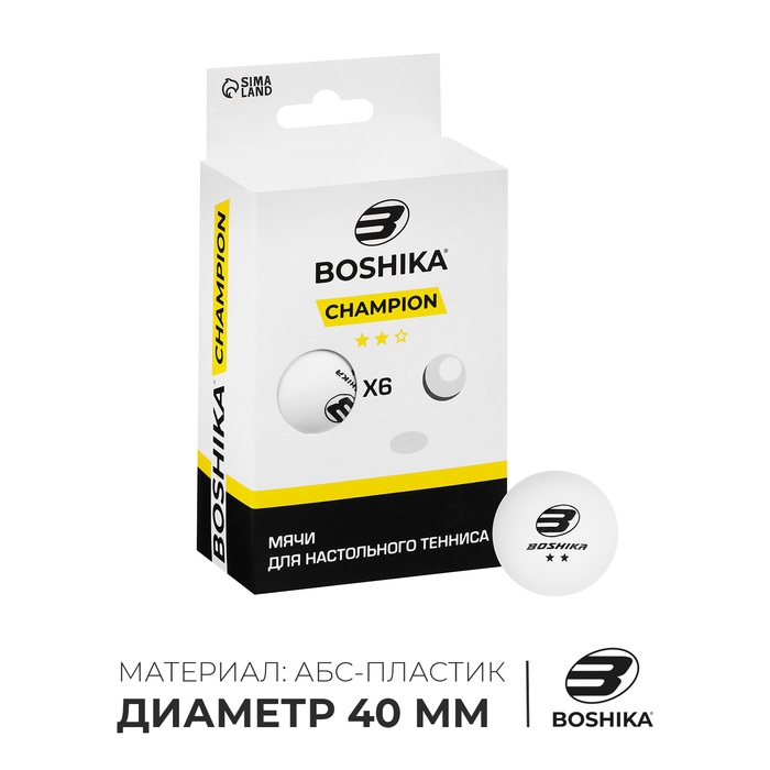 Набор мячей для настольного тенниса BOSHIKA Expert 3*, d=40+ мм, 6 шт., цвет белый