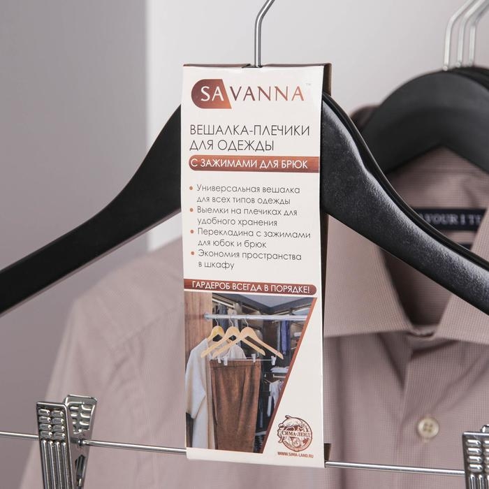Плечики - вешалка для брюк и юбок SAVANNA, 44,5х1,2х24,5 см, с зажимами, широкие плечики, деревянная сорт А