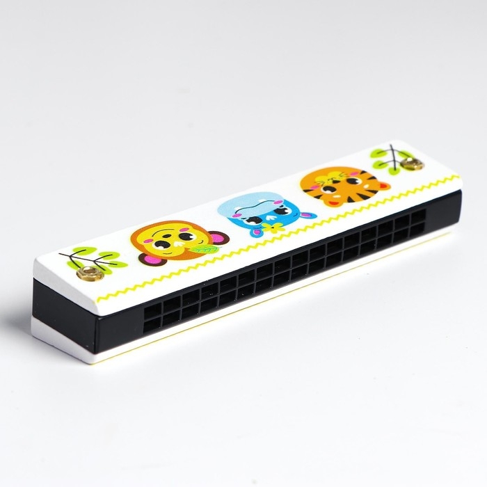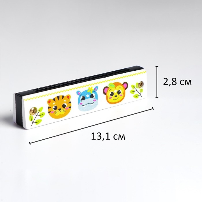Губная гармошка «Зверята», размер 2×13×3 см, цвет белый
