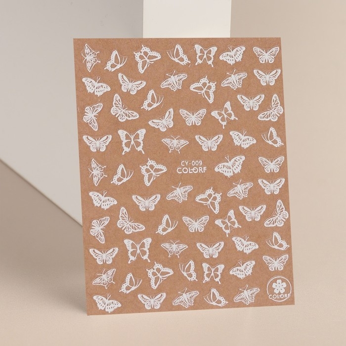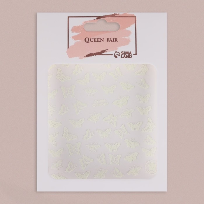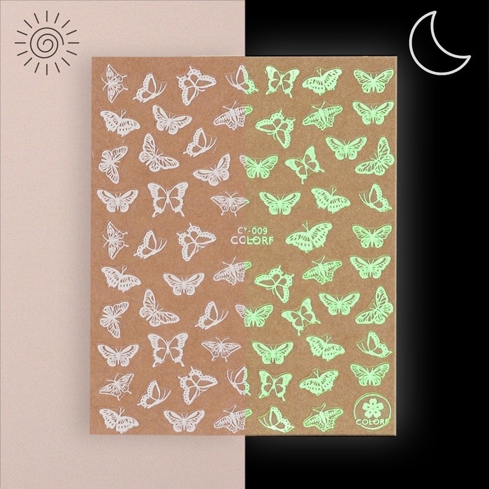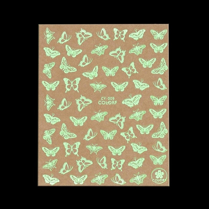 Наклейки для ногтей «Бабочки», флуоресцентные, цвет белый
