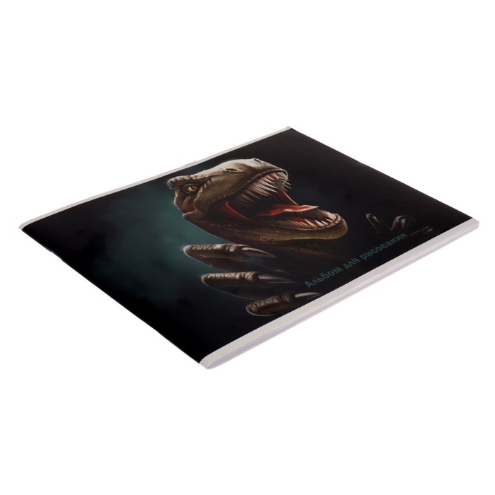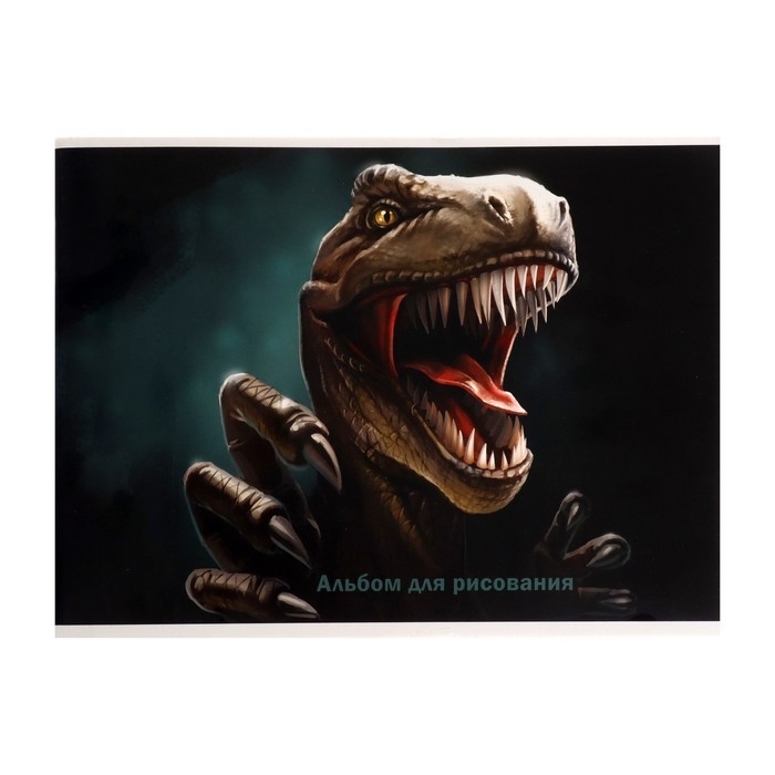 Альбом для рисования А4, 32 листа на скрепке "Динозавр", обложка мелованный картон, блок 100 г/м²