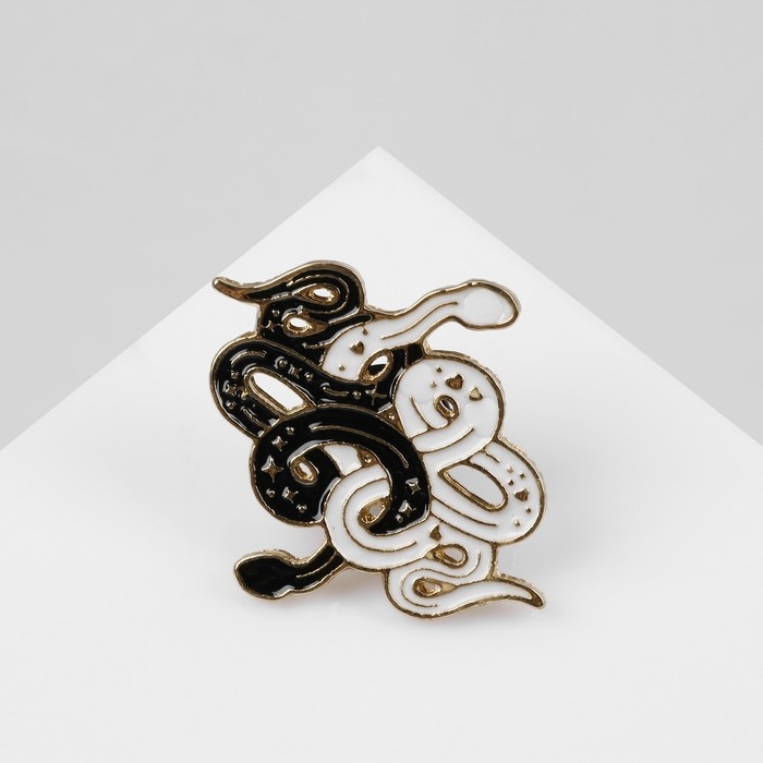 Новый год! Символ года 2025! Значок «Змеи» инь-ян, цвет чёрно-белый в золоте