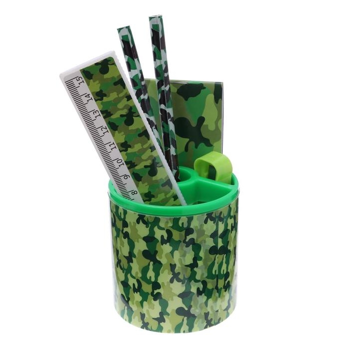 Набор настольный детский "Милитари" (подставка+2 карандаша+линейка+точилка+ластик+блокнот 8 листов+ножницы)