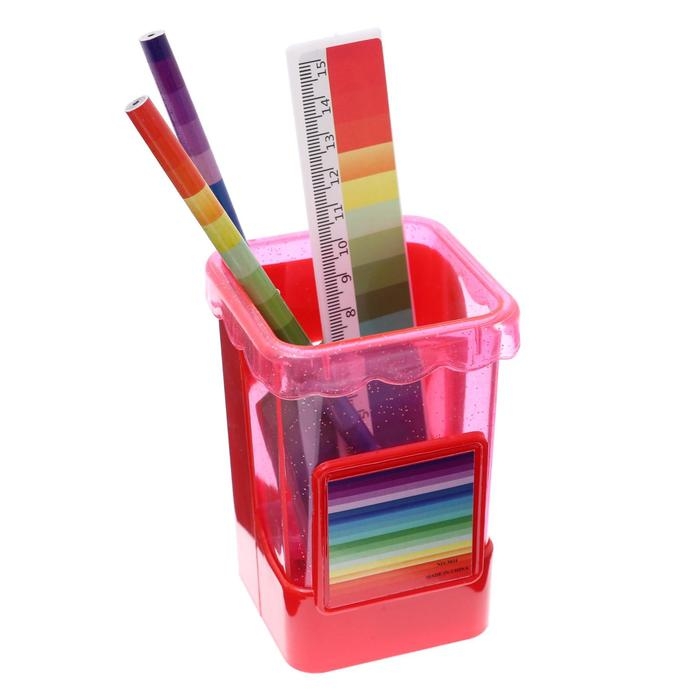 Набор настольный детский "Радуга" (подставка+2 карандаша+линейка+точилка+ластик+блок 8 листов)