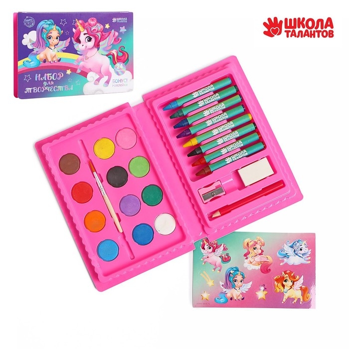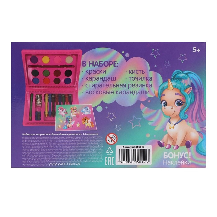 Набор для творчества «Волшебные единороги» оценит маленькая поклонница магических животных. Тематический набор поможет воплотить все творческие идеи маленького художника.