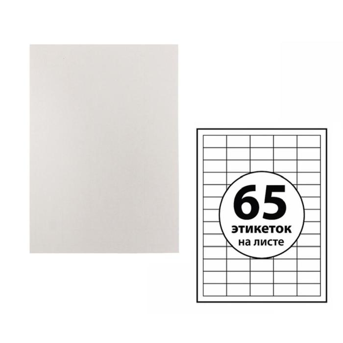 Этикетки А4 самоклеящиеся 50 листов, 80 г/м, на листе 65 этикеток, размер: 38 х 21,2 мм, глянцевые, белые