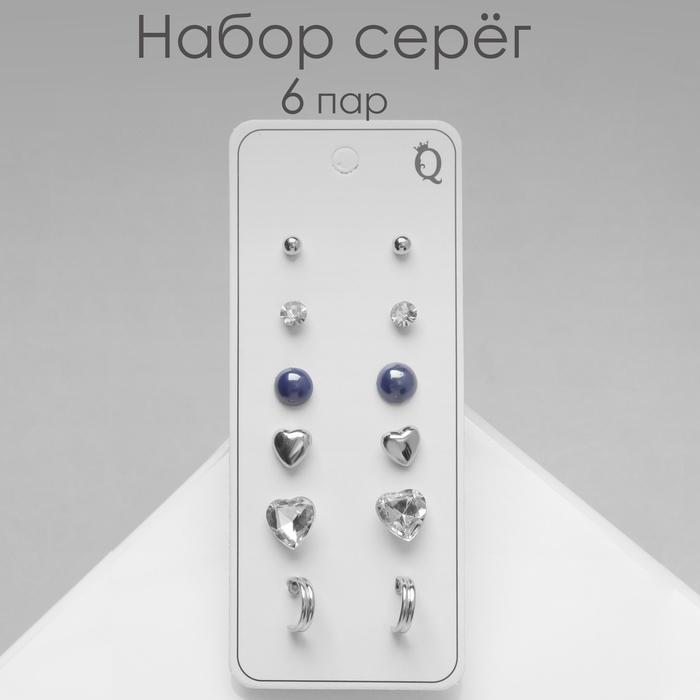 Пусеты 6 пар «Жемчужные» шары, цвет чёрно-белый в серебре