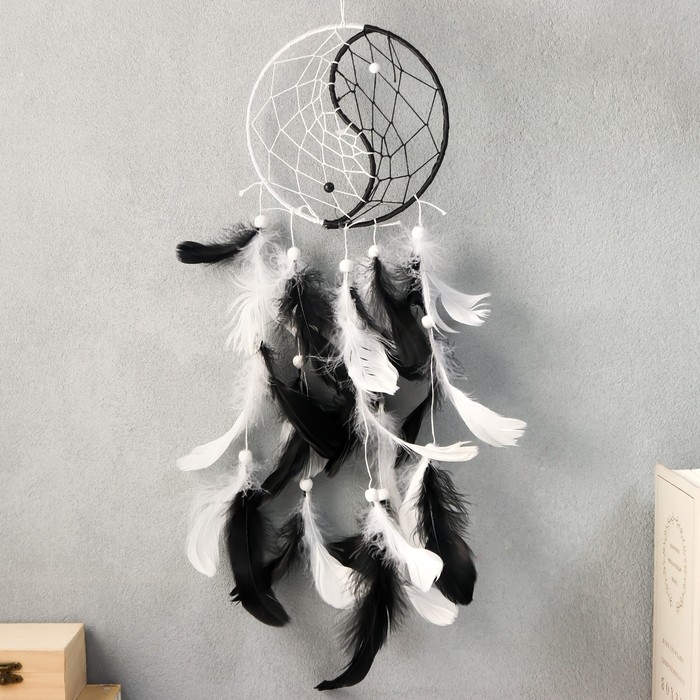 Ловец снов "Инь-янь" чёрно-белые пёрышки 44х15 см