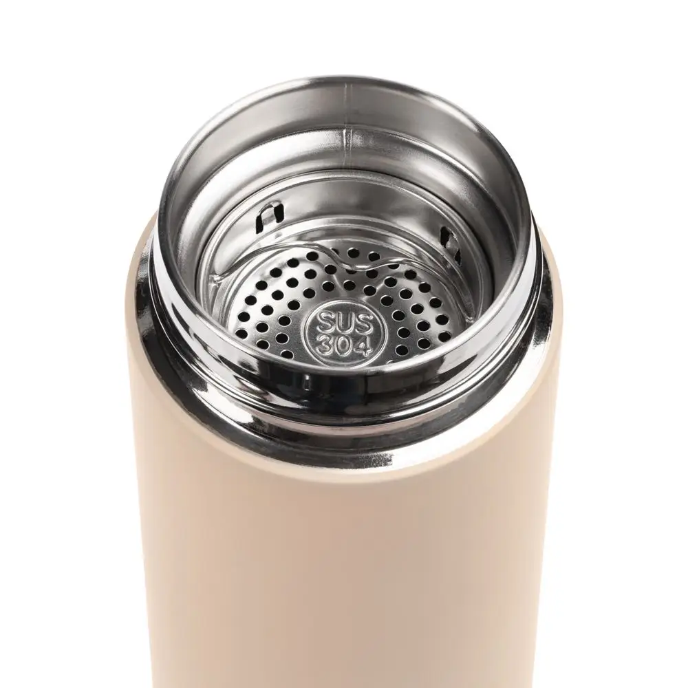Компактный термос Percola пригодится и в городе, и на природе. Съемное ситечко поможет заварить чистую чашку чая или кофе, а цилиндрический корпус даст широкие возможности для маркетинговых сообщений.