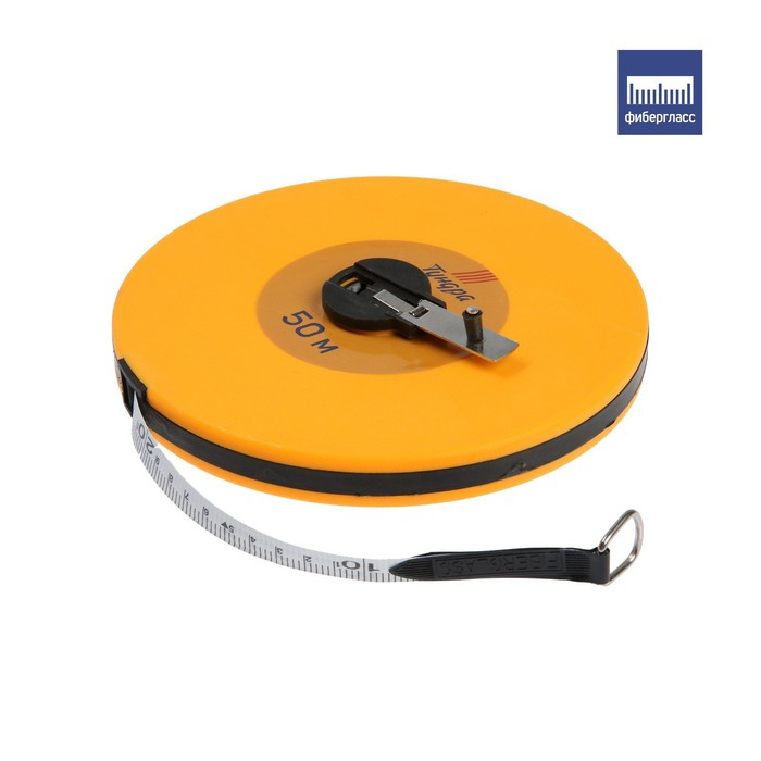 Рулетка геодезическая ТУНДРА, фиберглассовая лента, закрытый корпус, 50 м х 13 мм