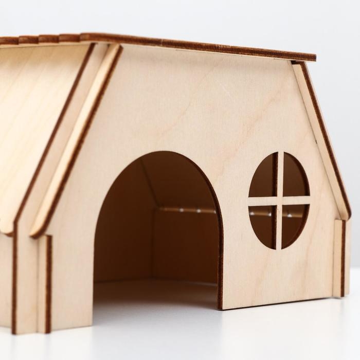 Домик для грызунов изготовлен из фанеры высшего сорта с ошкуренными краями без окрашивания. Во время сна в домике любимец чувствует себя в безопасности. Домик из фанеры - это экологично и безопасно, отличное место для скачек ваших домашних питомцев. Зоотовары - замечательный подарок. Грызуны нуждаются в повышенной активности. С таким домиком животному будет, чем заняться и где отдохнуть.