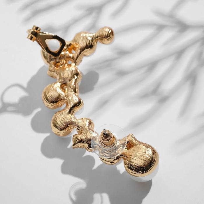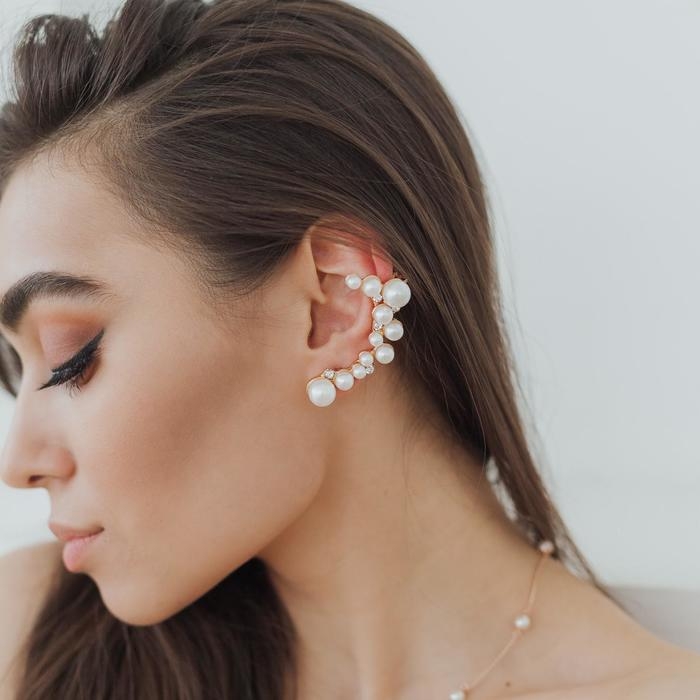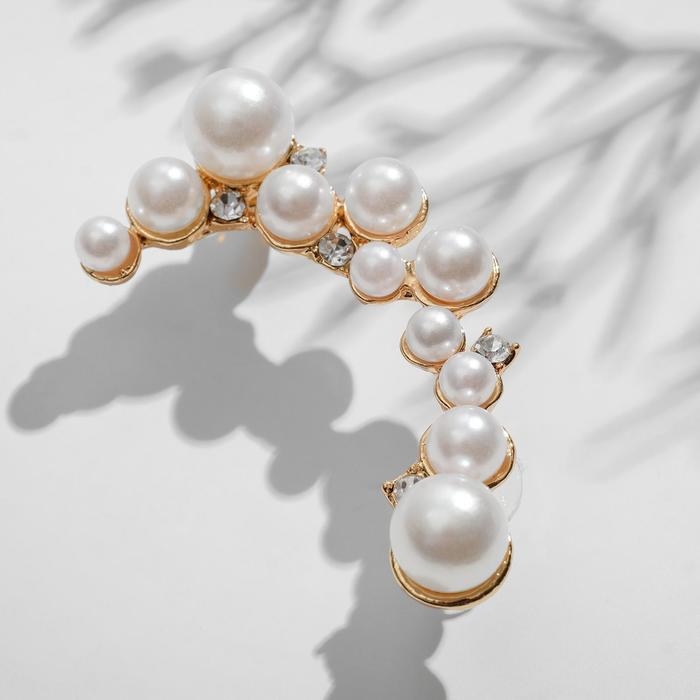 Серьга «Кафф» жемчужное сокровище, цвет белый в золоте