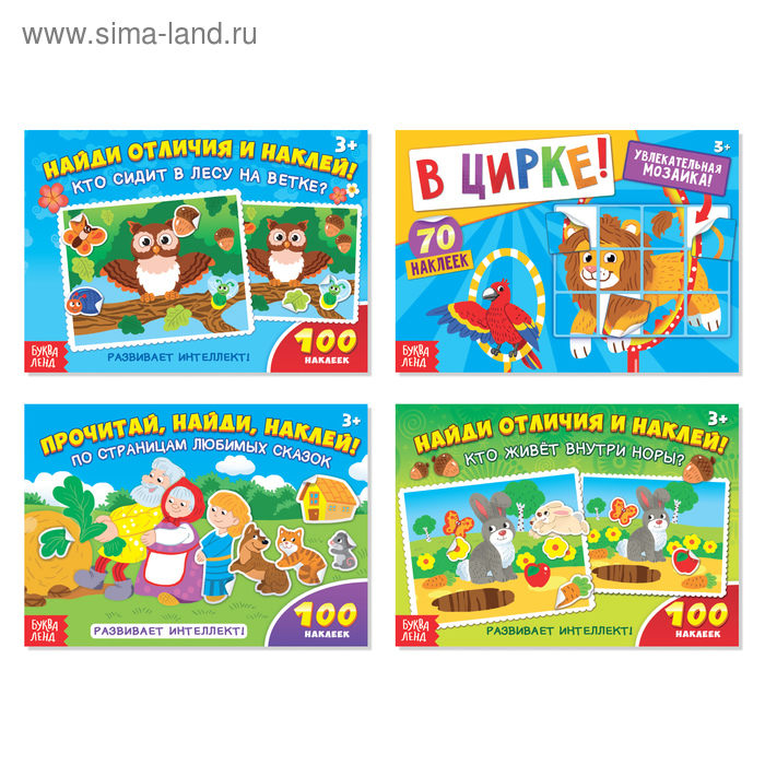 - В каждой книге из набора есть интересные задания и красочные наклейки, с помощью которых малышу предстоит выполнять эти задания.