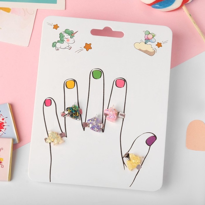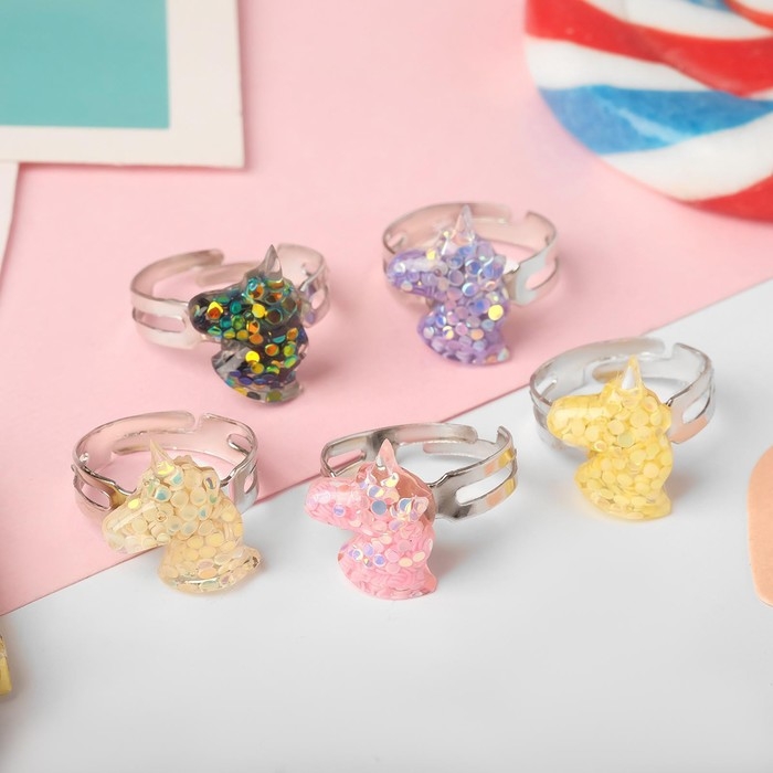 Набор детских колец «Пальчики» единорожки блестящие, 5 шт., цветные, безразмерные