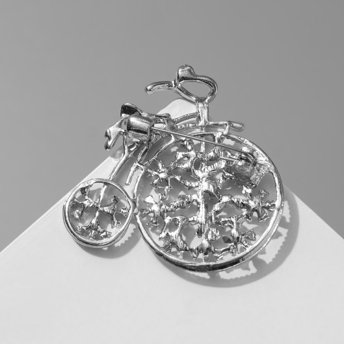 Брошь «Велосипед» ретро, цвет белый в серебре