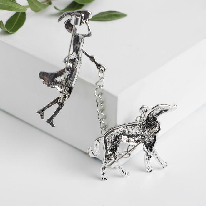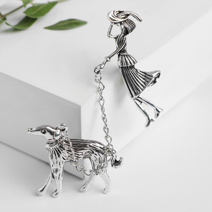 Брошь «Дама» с собачкой, цвет чернёное серебро