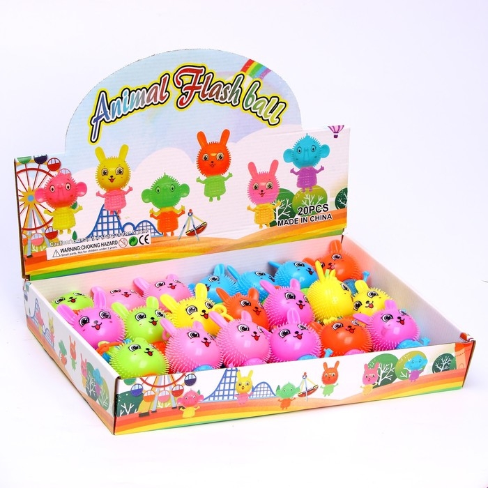 Мяч детский резиновый ёжка световой «Зверята», цвета МИКС, в шоубоксе