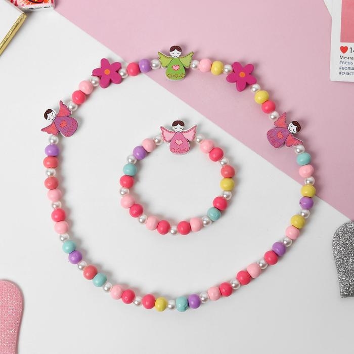 Набор детский 2 предмета: бусы, браслет «Выбражулька», ангел, цветной