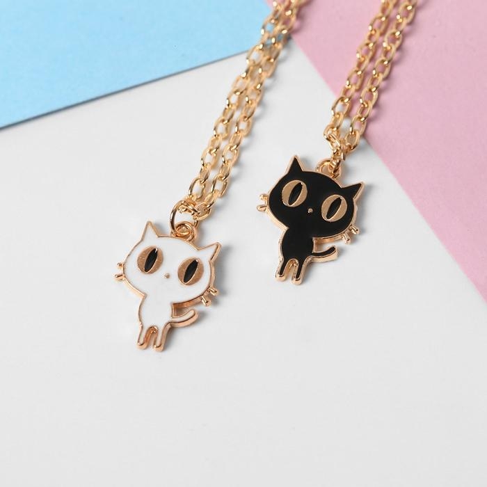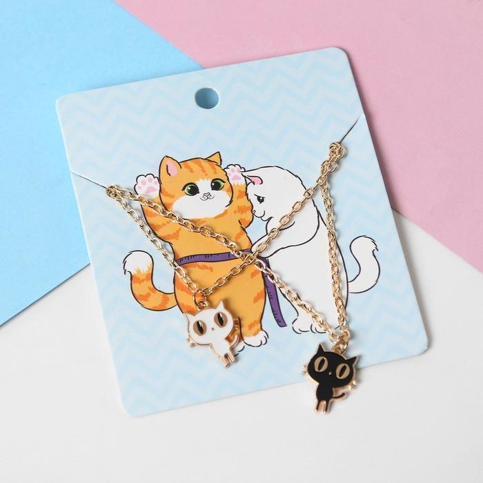 Кулоны «Неразлучники» котики, цвет чёрно-белый в золоте, 45 см