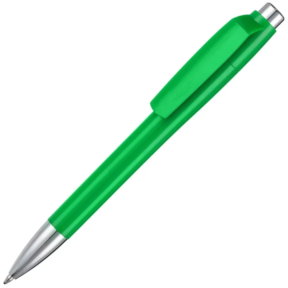 Пластиковая ручка с глянцевым корпусом и хромированными деталями. Большой клип идеален для нанесения логотипа компании.
