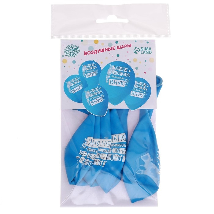 Воздушный шар латексный 12" «С днём рождения, любимый внук», 5 шт.