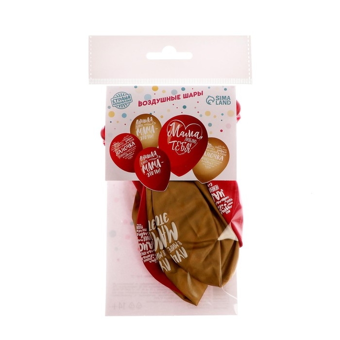Воздушный шар латексный 12" "Мама, Пожелания", 5 шт.