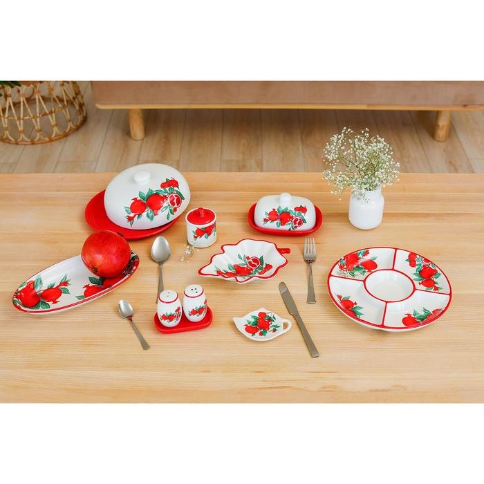 Посуда серии «Гранат» от торговой марки Доляна изготовлена из качественного доломита. Благодаря оригинальному дизайну, изделия гармонично дополнят сервировку стола, а также прекрасно подойдут в качестве подарка. Посуда выполнена в насыщенных цветах, что позволит ей стать ярким акцентом в любом интерьере кухни.