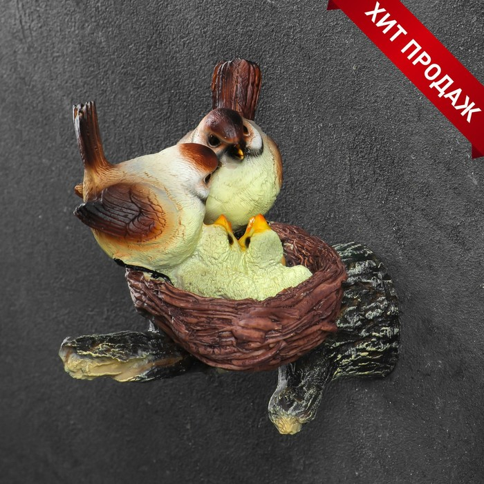 Подвесной декор "Гнездо с серыми птицами" 17х10х17см