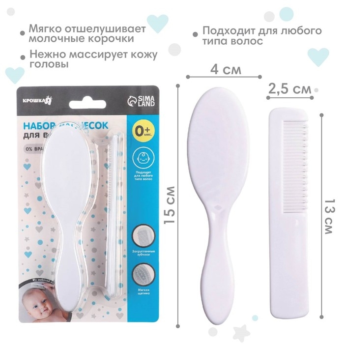 Расческа-щетка с мягкой щетиной и удобная расческа с закругленными зубчиками предназначены для малышей с первых дней жизни.