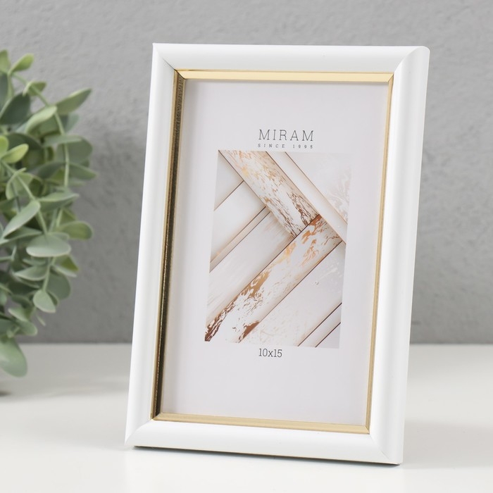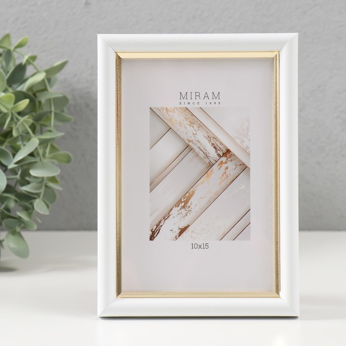 Фоторамка пластик Gallery 10х15 см, 636461 белый с золотом (пластиковый экран)