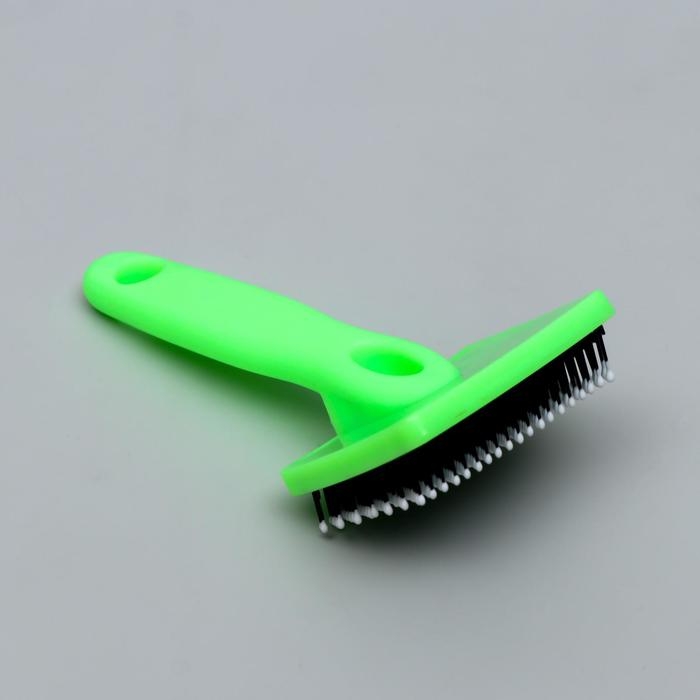 Пуходерка пластиковая мягкая с закругленными зубьями, малая, 6 х 13,5 см, зелёная