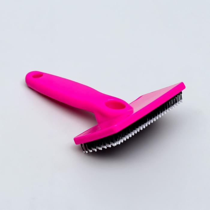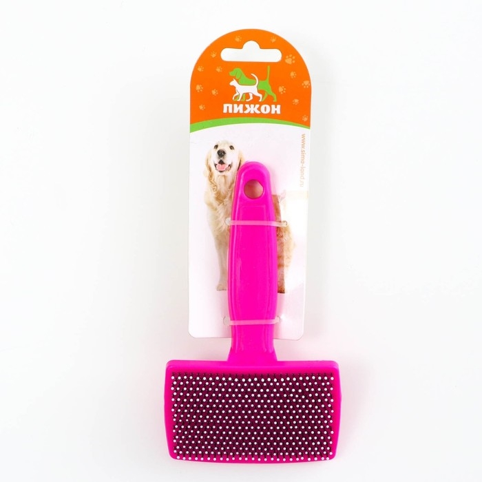 Пуходерка пластиковая мягкая с закругленными зубьями, средняя, 9 х 15,5 см, розовая