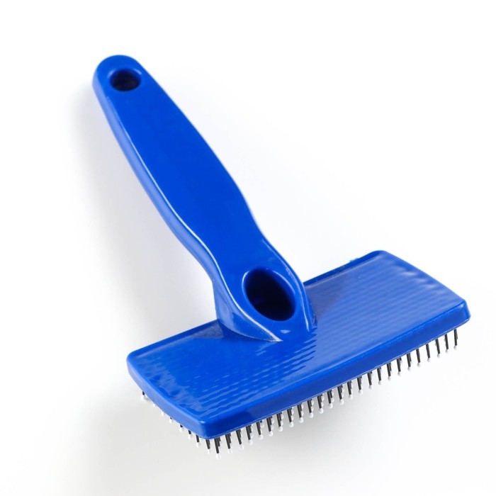 Пуходерка пластиковая мягкая с закругленными зубьями, средняя, 9 х 15,5 см, синяя