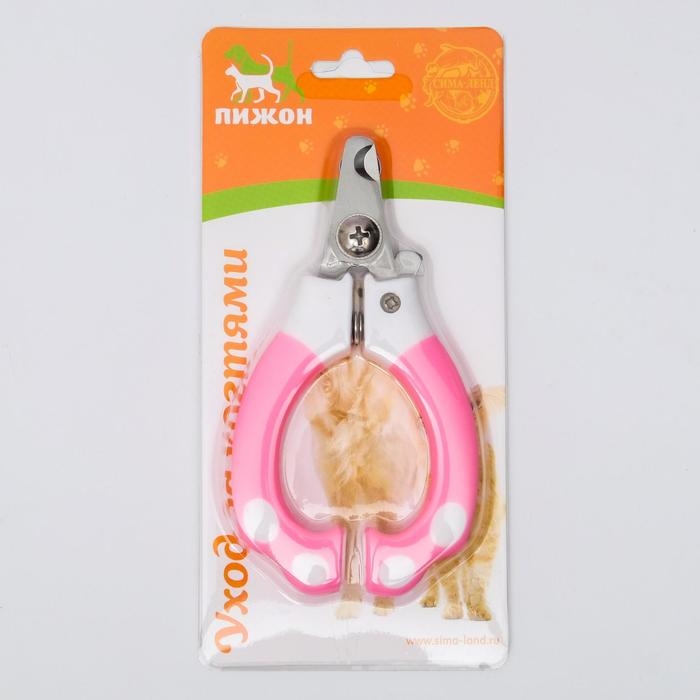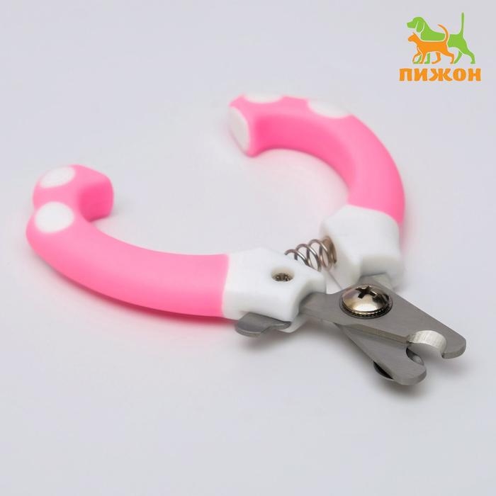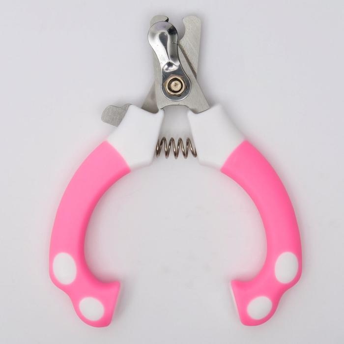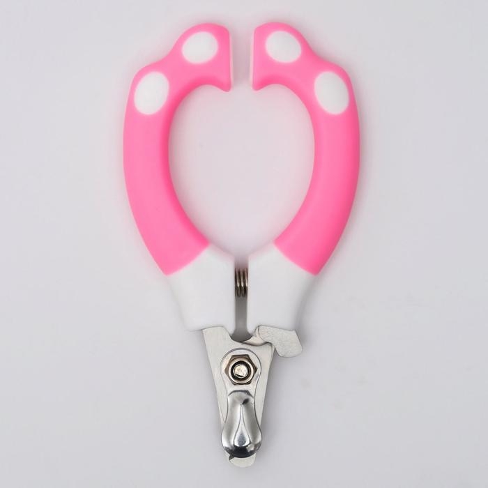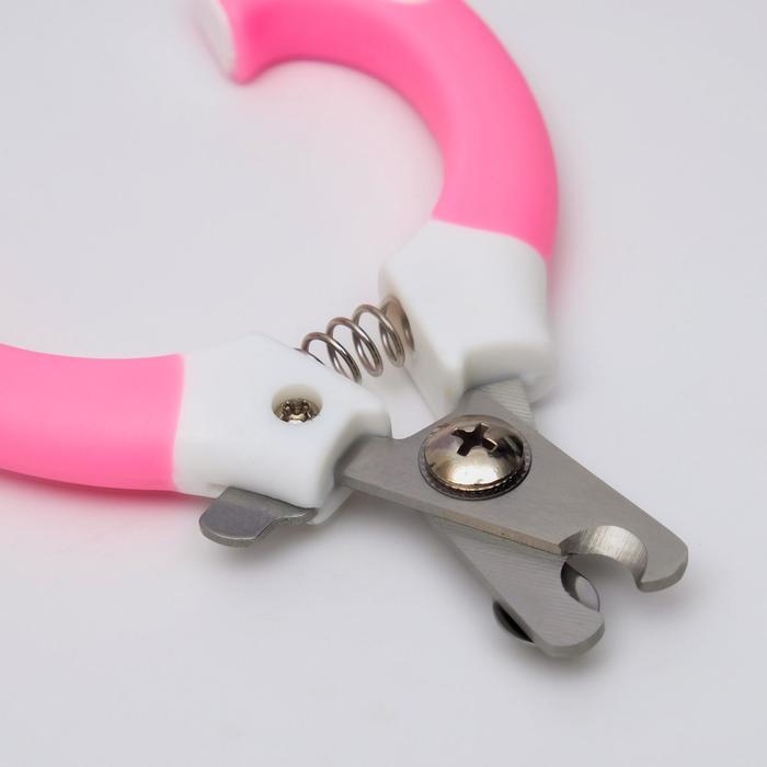 Ножницы-когтерезы с мягкими ручками, отверстие 8 мм, бело-розовые